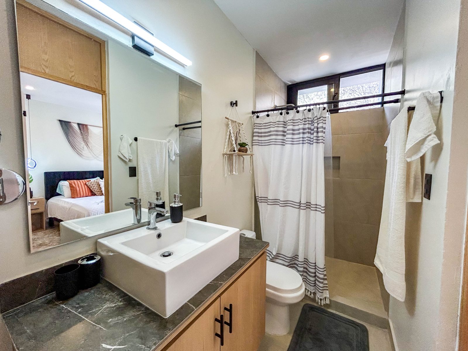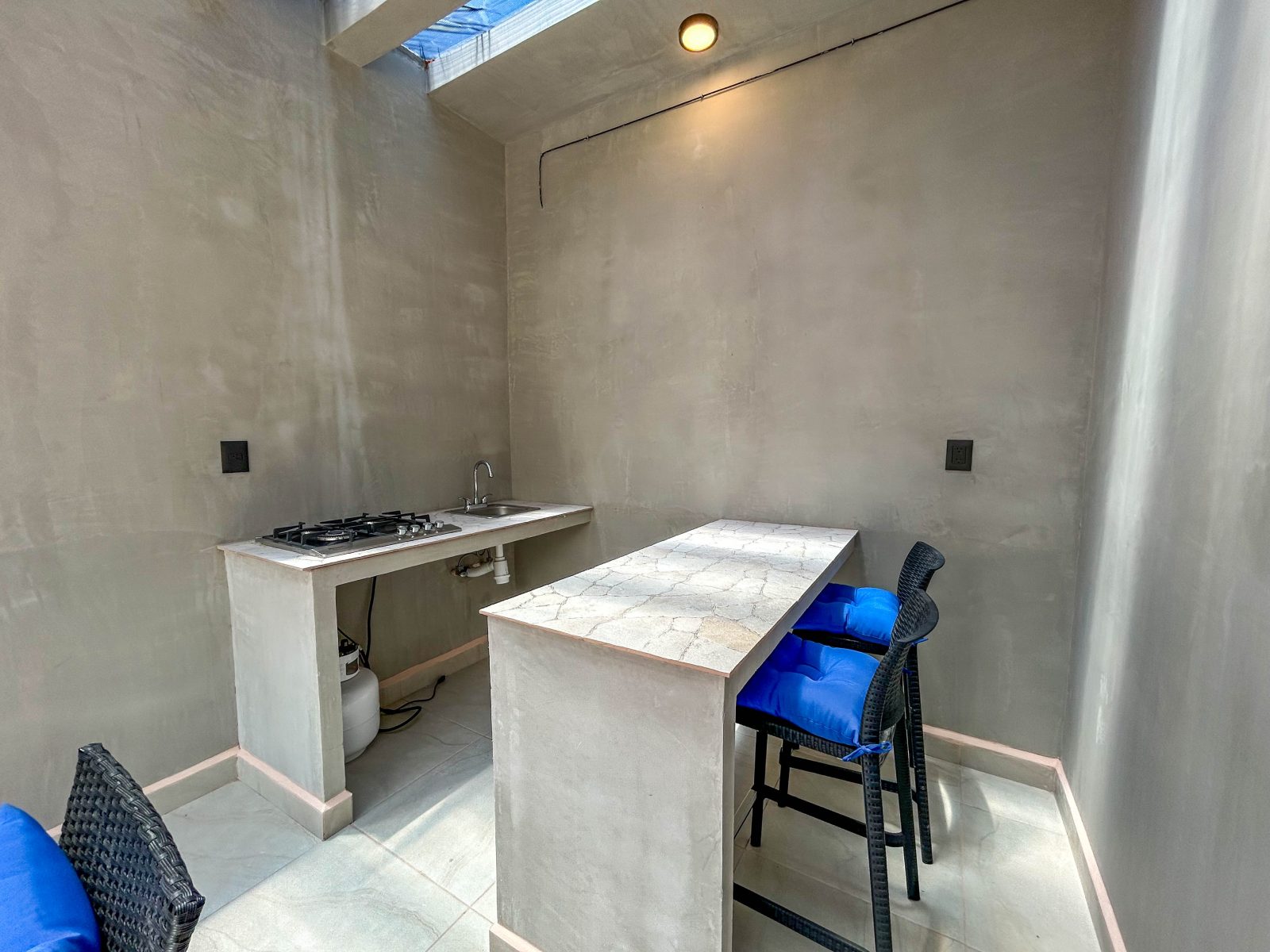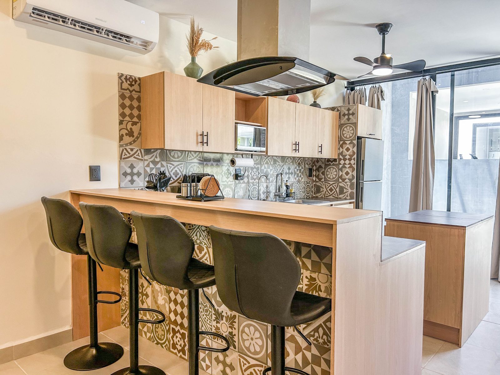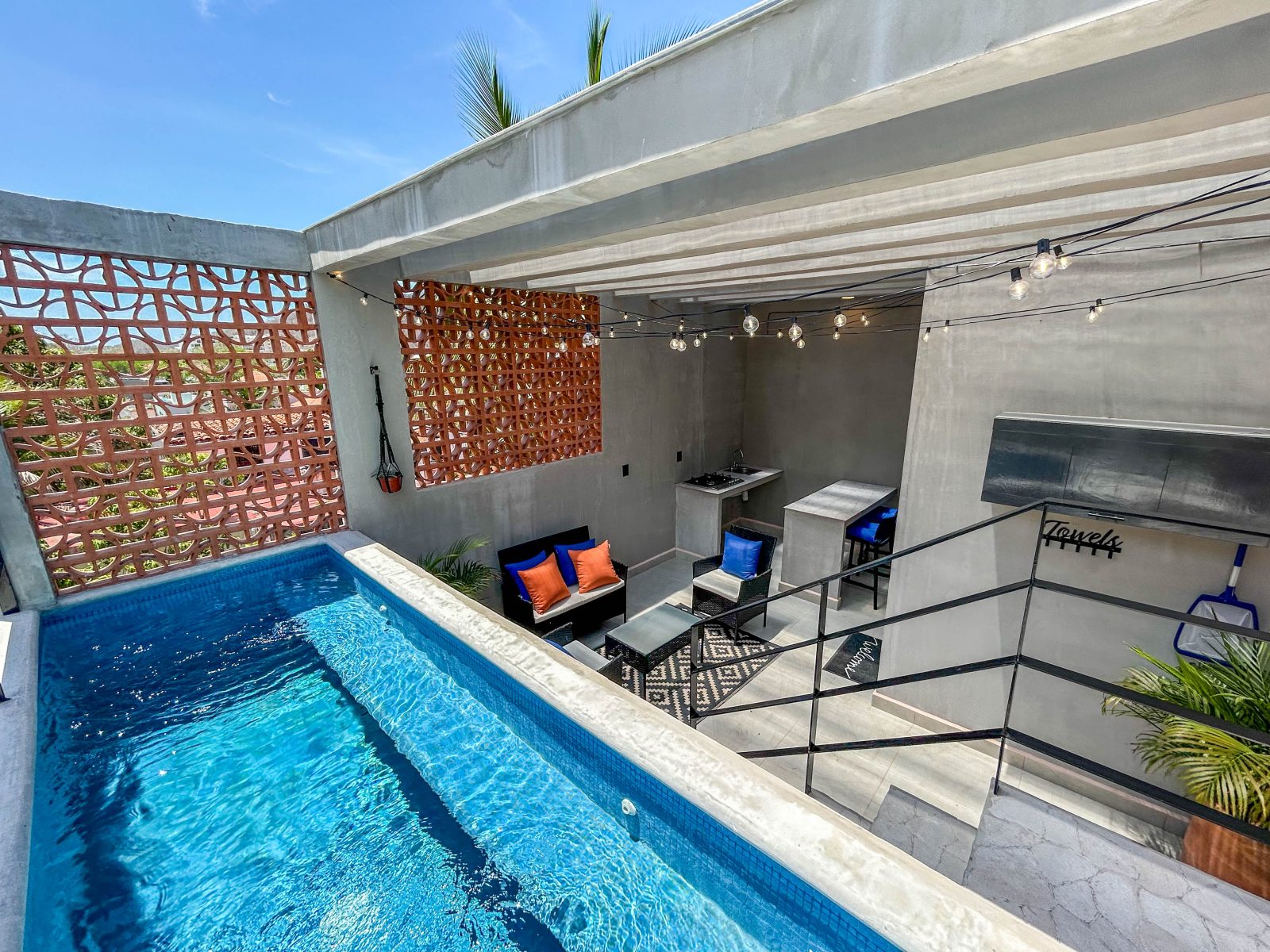 Upstairs, a flexible space serves as a second bedroom or office, complete with floor-to-ceiling windows that flood the room with natural light. Another en-suite bath and direct access to your private rooftop terrace make this level a standout. Your rooftop oasis features a custom cooking area, lounge space, and private plunge pool—perfect for relaxing or hosting under the stars.