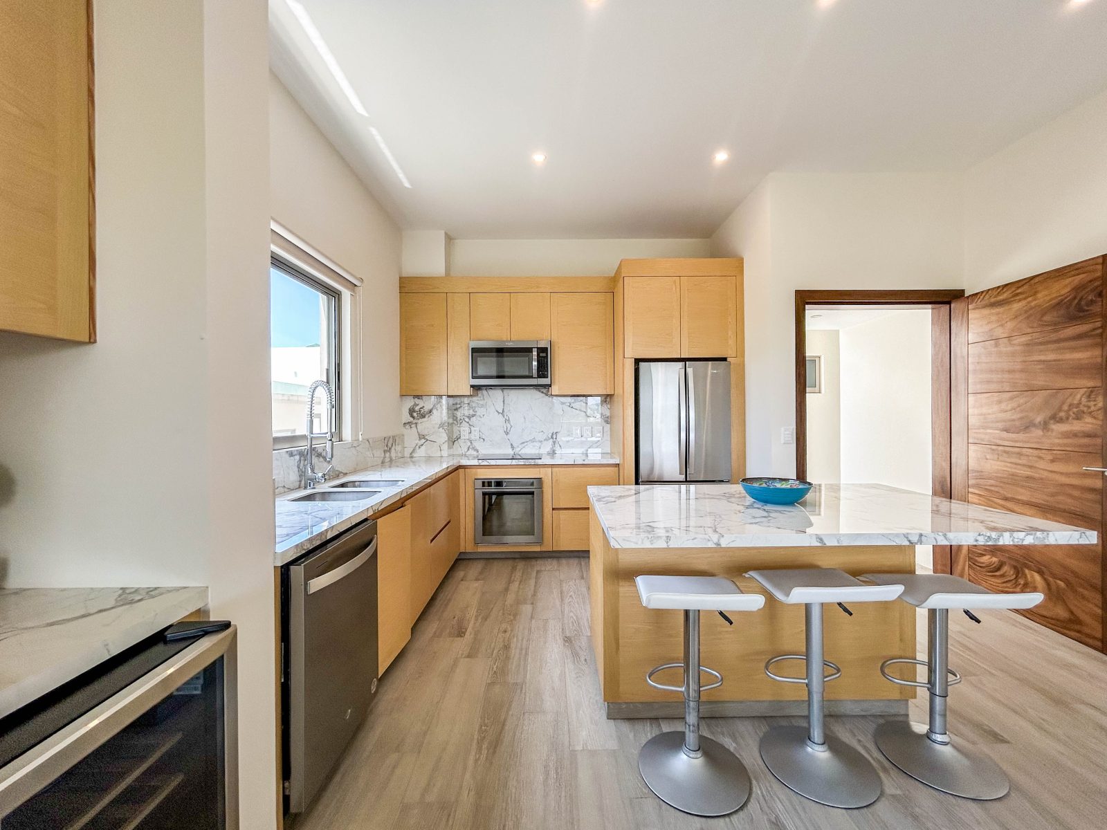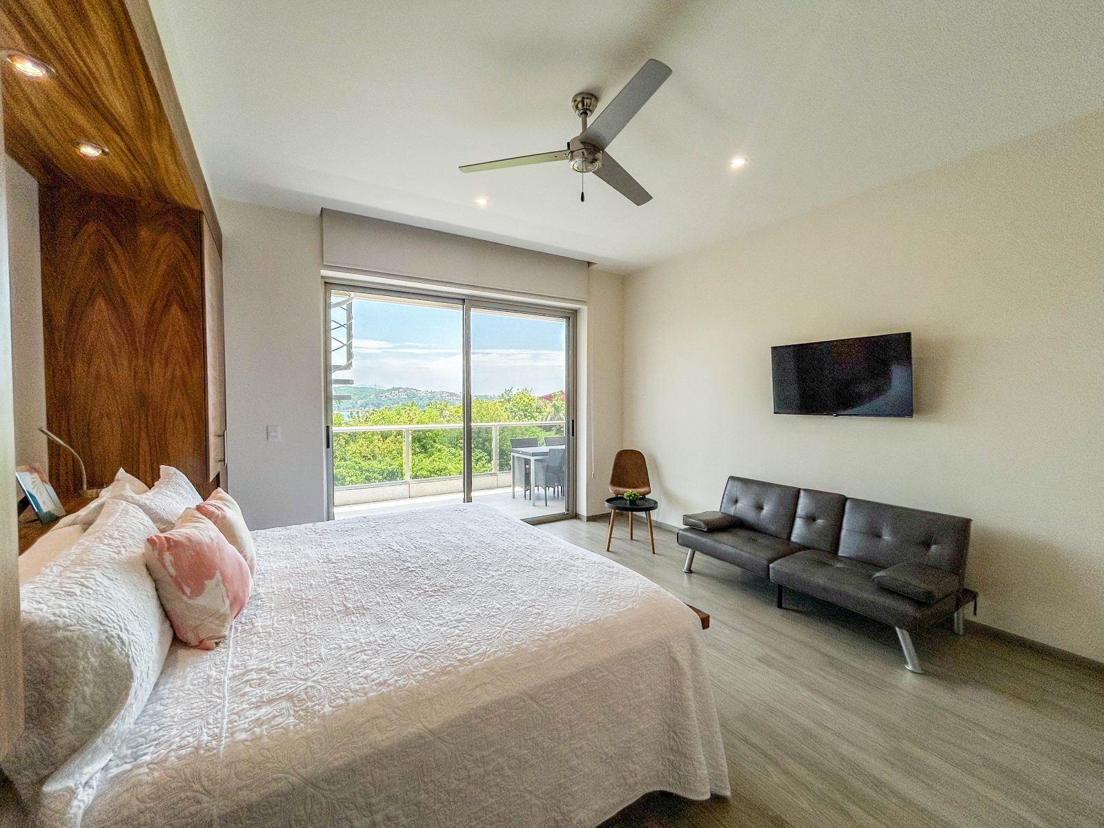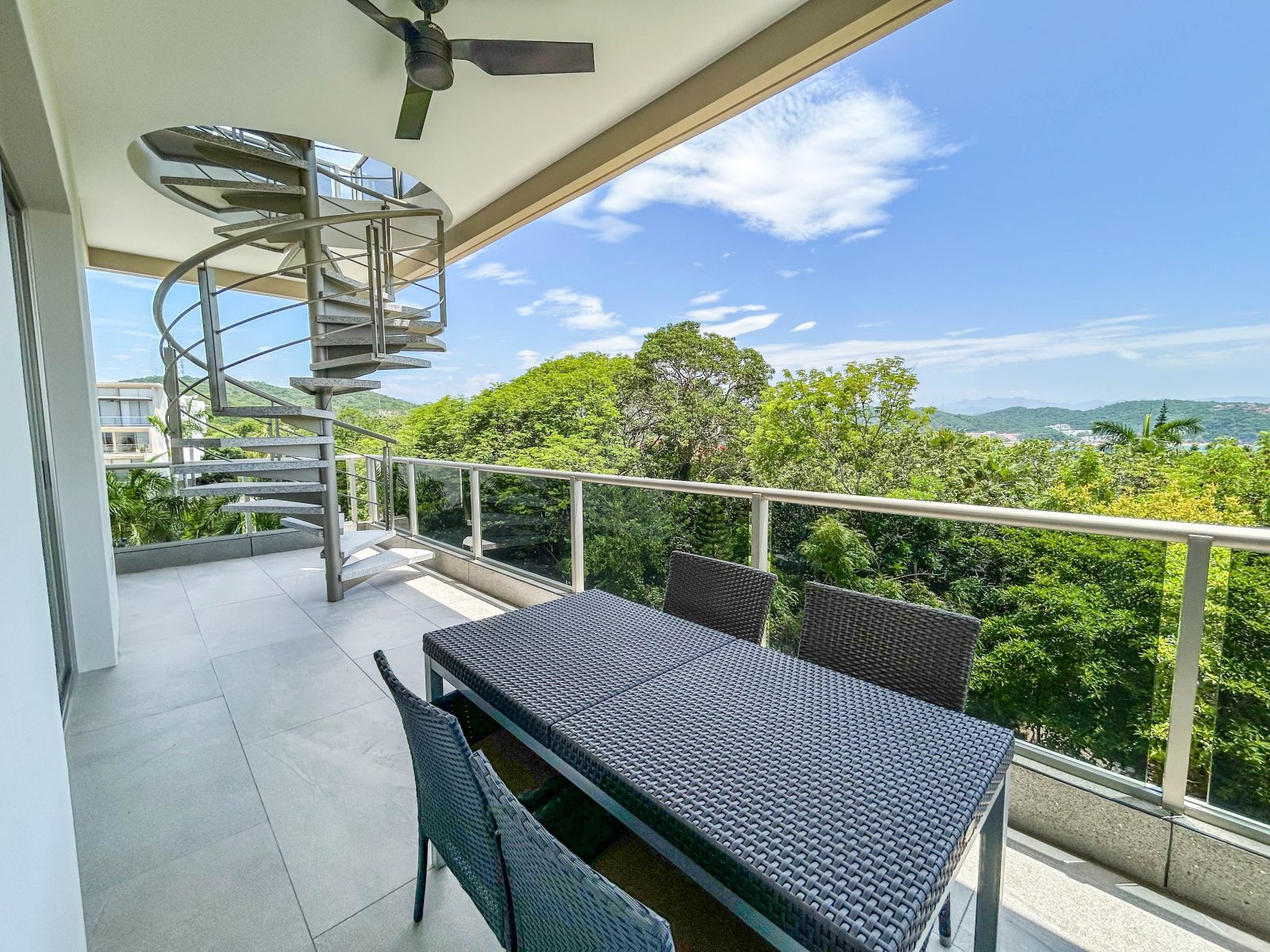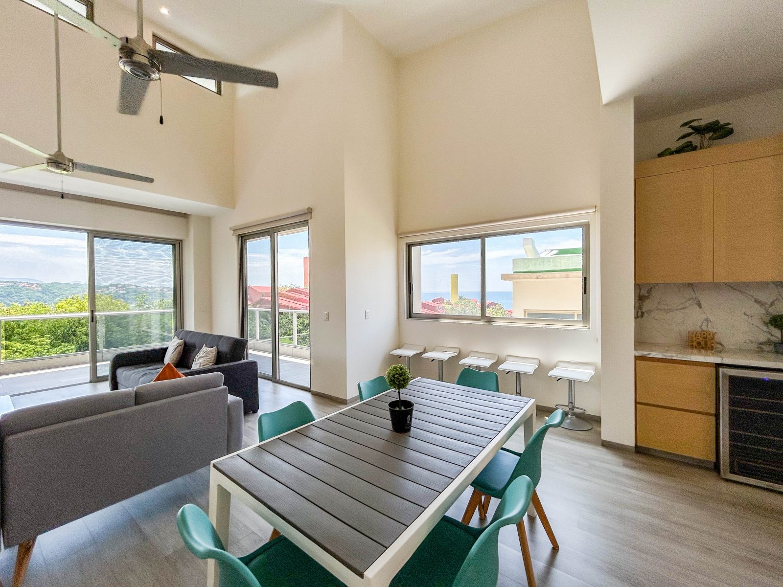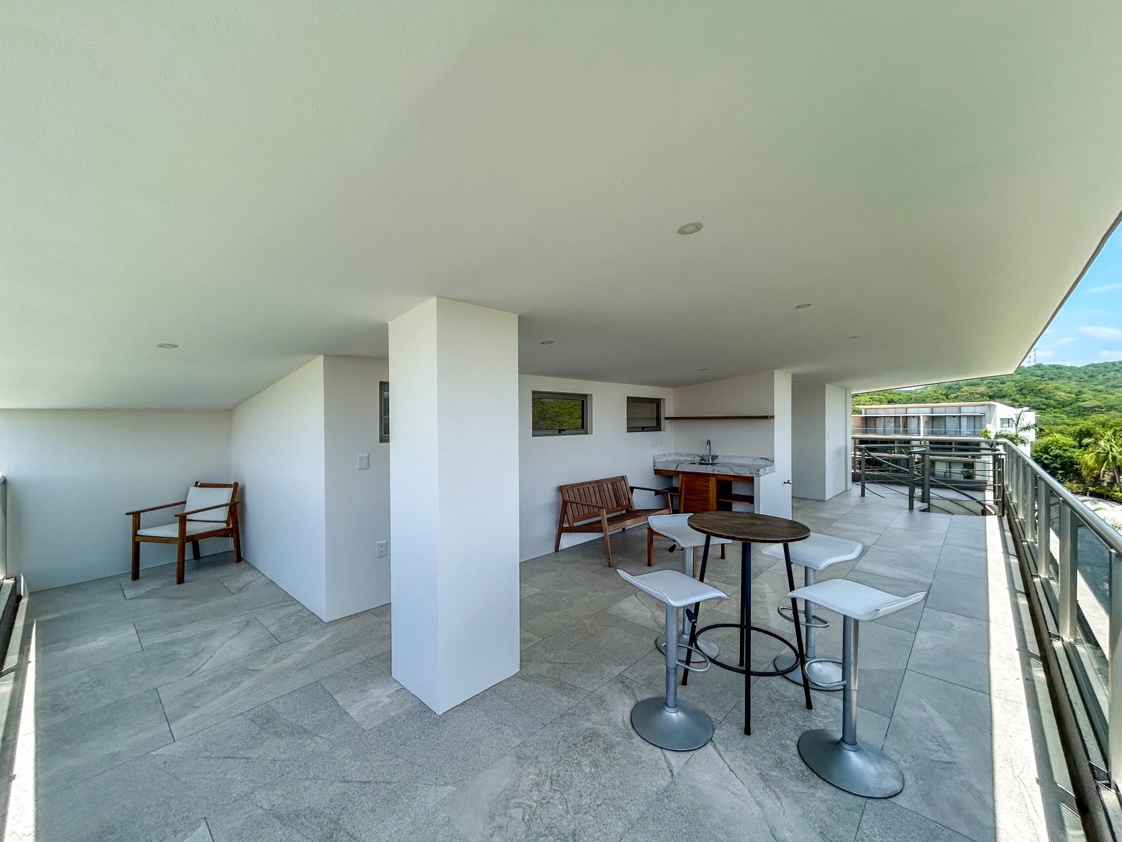 The highlight of this penthouse is its private rooftop terrace—a one-of-a-kind retreat with panoramic views over Playa Tangolunda and Arrocito Bay. Featuring a spacious lounging area, bar, and a convenient half bath, this space is ideal for entertaining guests, enjoying sunset cocktails, or unwinding under the stars.