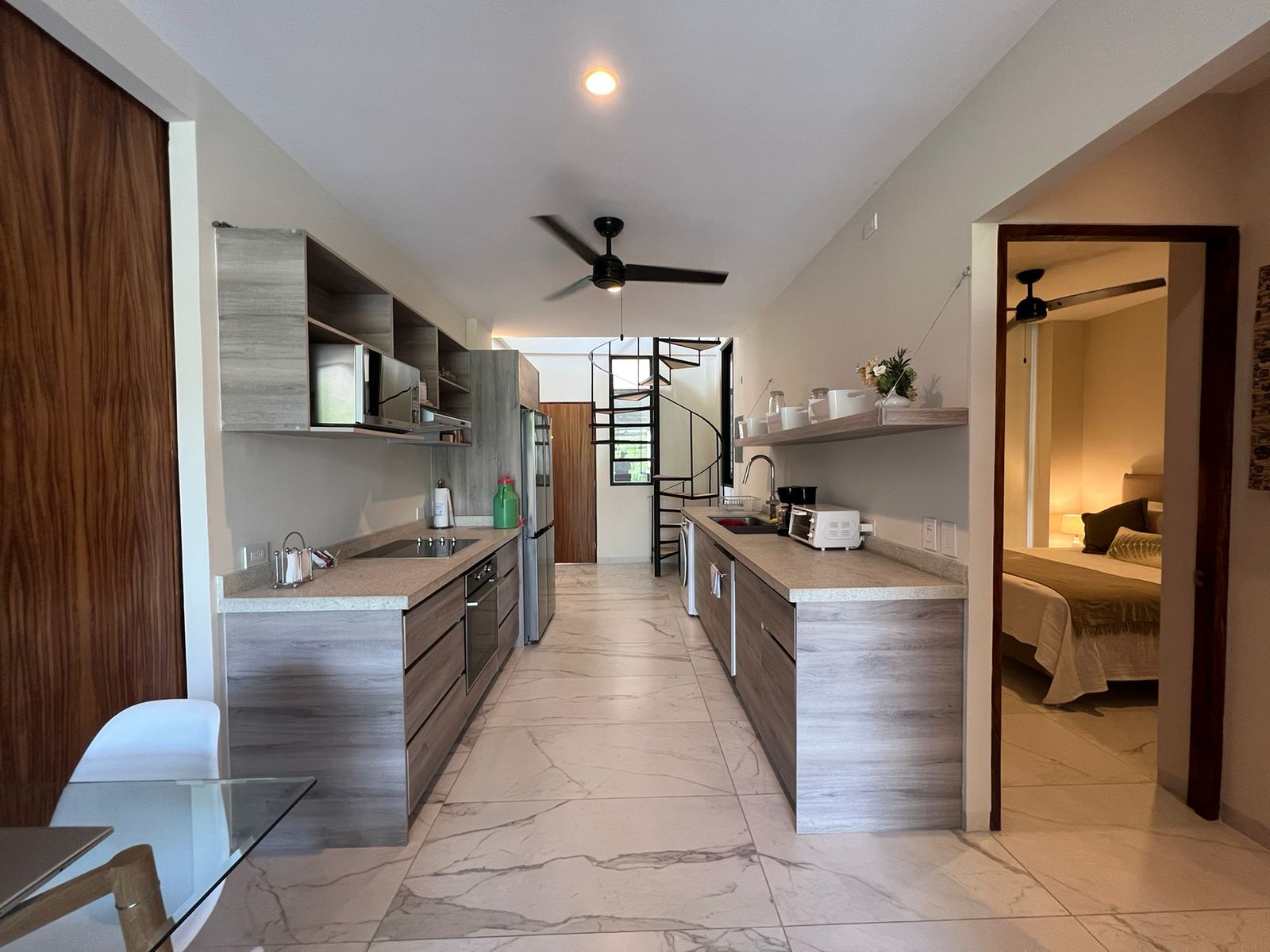 Residents of Biulu Condos can also enjoy exceptional amenities, including a ground-floor uncovered pool, a rooftop garden with panoramic views of Tangolunda, solar panels for energy efficiency, parking, an elevator, and 24-hour security.