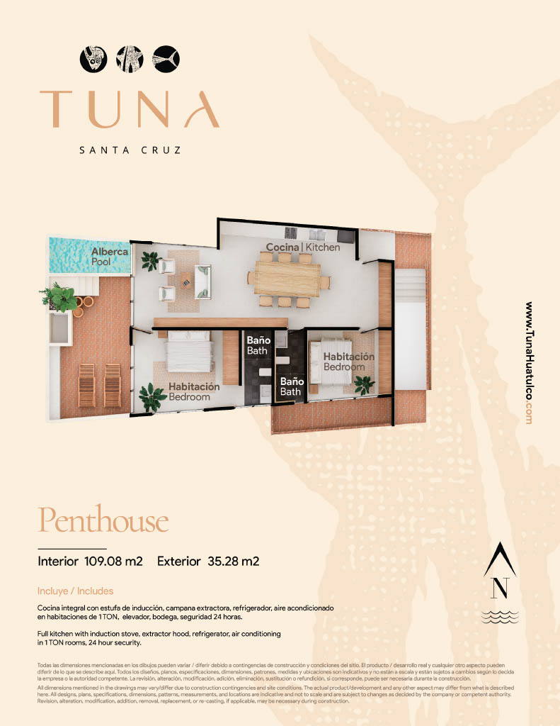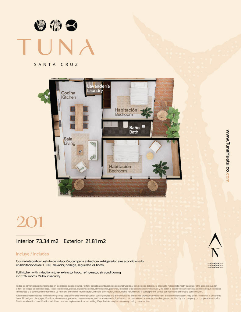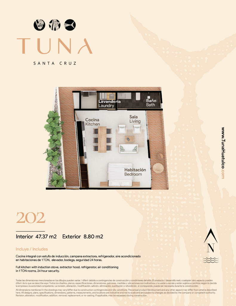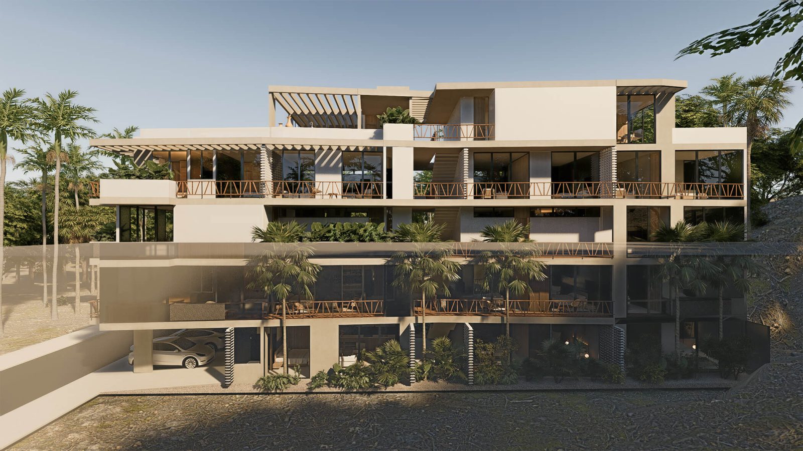 TUNA is a boutique collection of 15 exclusive condos and one luxurious penthouse, thoughtfully designed to harmonize contemporary living with the natural beauty of a lush beach destination. Offering studios, as well as one- and two-bedroom units, each residence embodies elegance and tranquility, seamlessly blending modern design with the surrounding environment. Nestled on a quiet residential street in Sector E, just a short stroll from the stunning Santa Cruz Beach, shops, and restaurants, this exceptional development backs onto a serene nature reserve, creating a unique connection to nature.