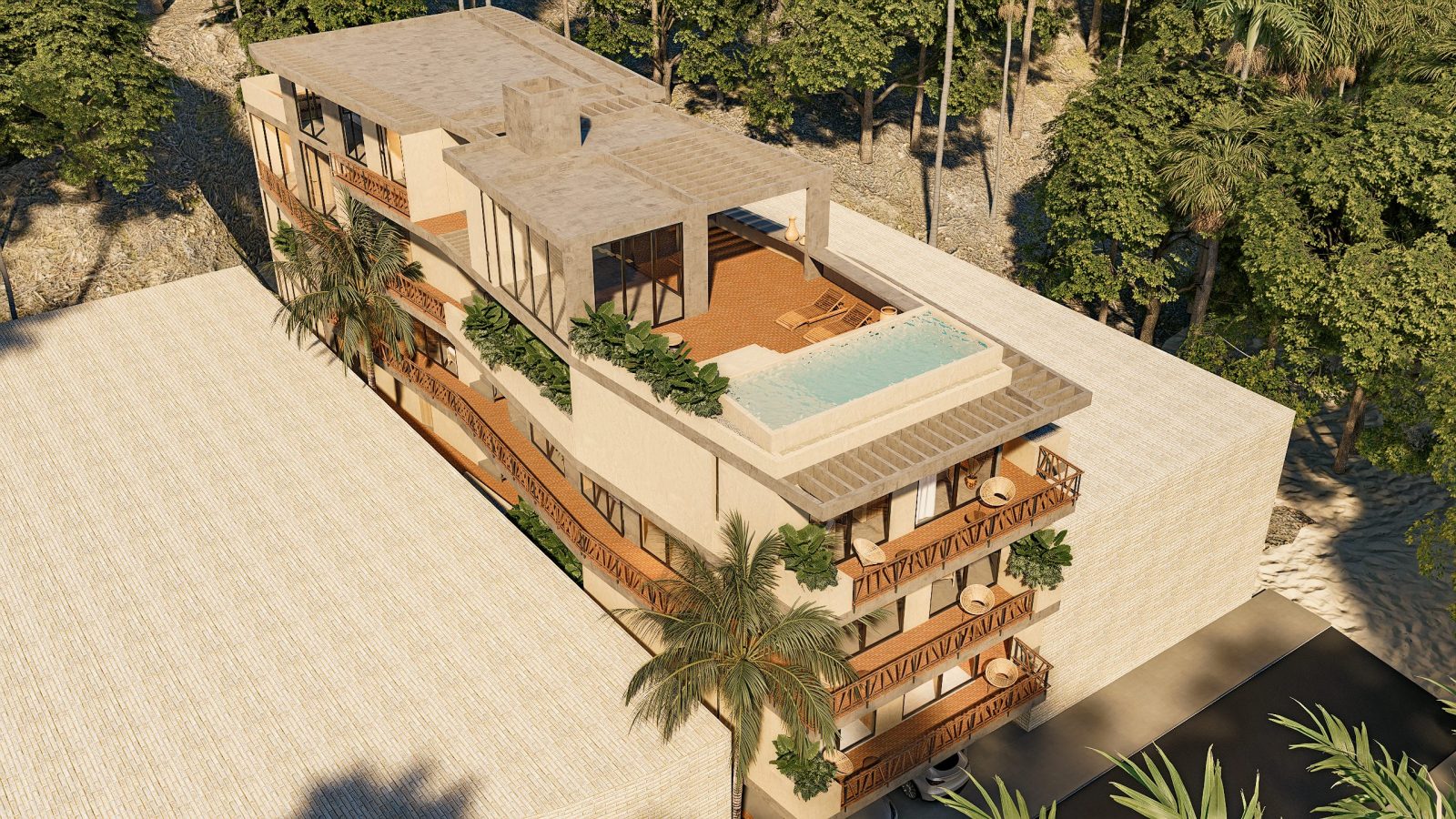 Residents will enjoy outstanding amenities, including a rooftop pool with breathtaking views, a well-equipped gym, sunbathing areas, a barbecue space, parking, 24-hour security, and WiFi in public areas. The design emphasizes natural materials, cross-ventilation, and large windows that flood the interiors with natural light, ensuring maximum comfort and sustainability.